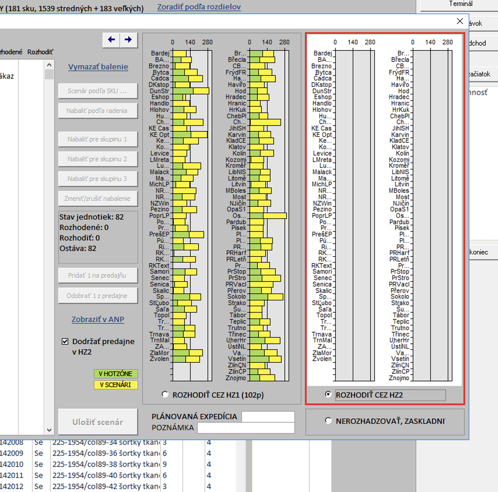 Při vytváření skupiny a zadávání prvního balíku je možné zadat si nejprve scénář jen pro vybrané prodejny (typicky pro balíky, kterých není tolik, kolik je prodejen). Pokud bude zaškrtnutné políčko "dodržet pořadí v HZ2", další balíky se rozhodí jen pro tyto prodejny.